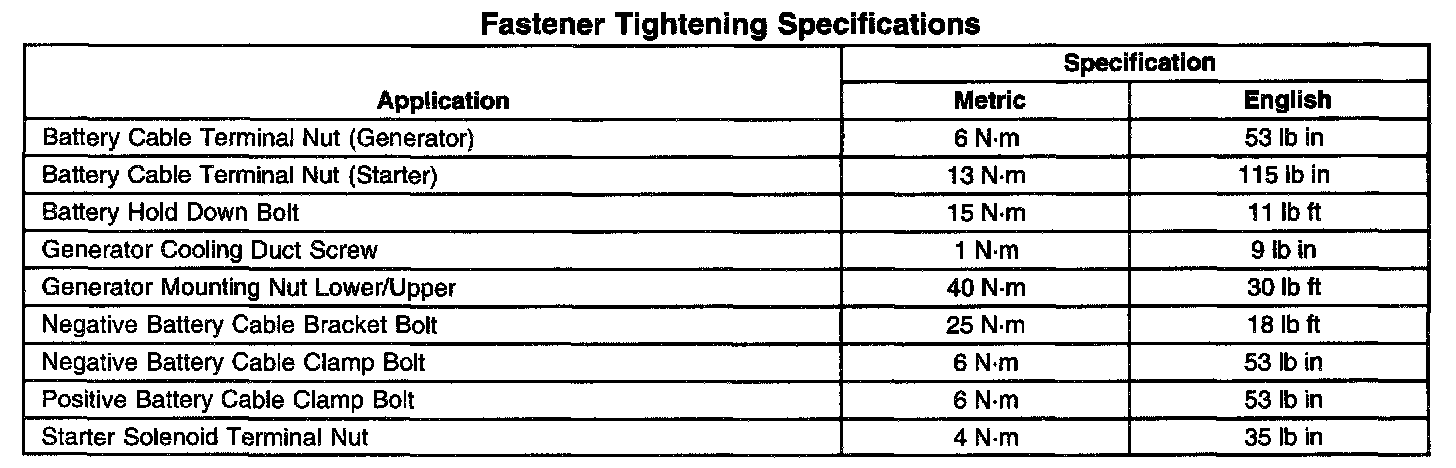 Fastener Tightening Specifications: