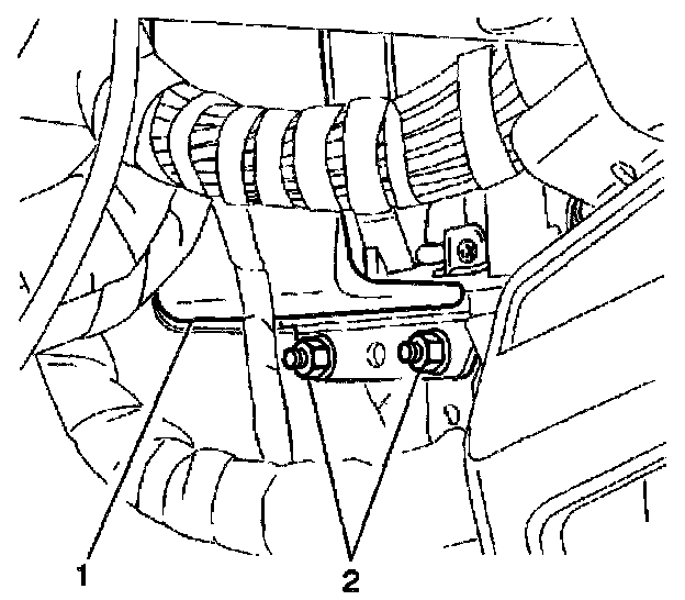 ^ Tighten the transmission control module nuts (2) until fully seated.