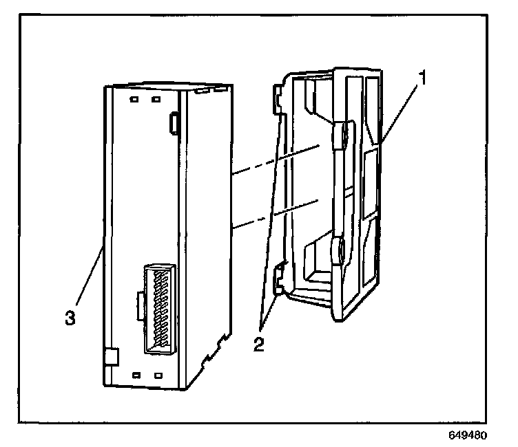 1. Slide the Cellular telephone module (3) into the mounting bracket (1), until an audible click is heard, indicating the Cellular telephone module (3) is secured in the mounting bracket (2).