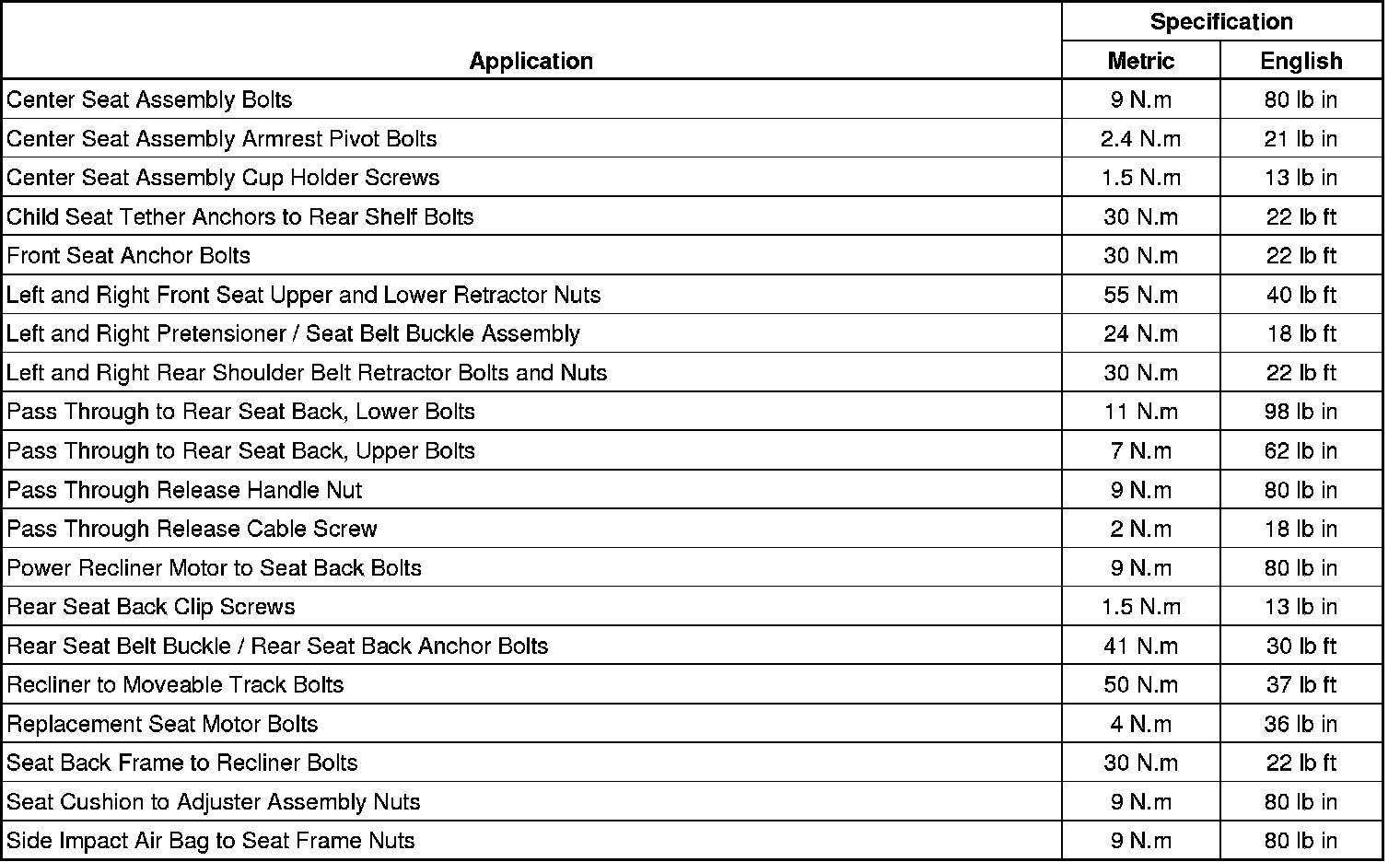 Fastener Tightening Specifications