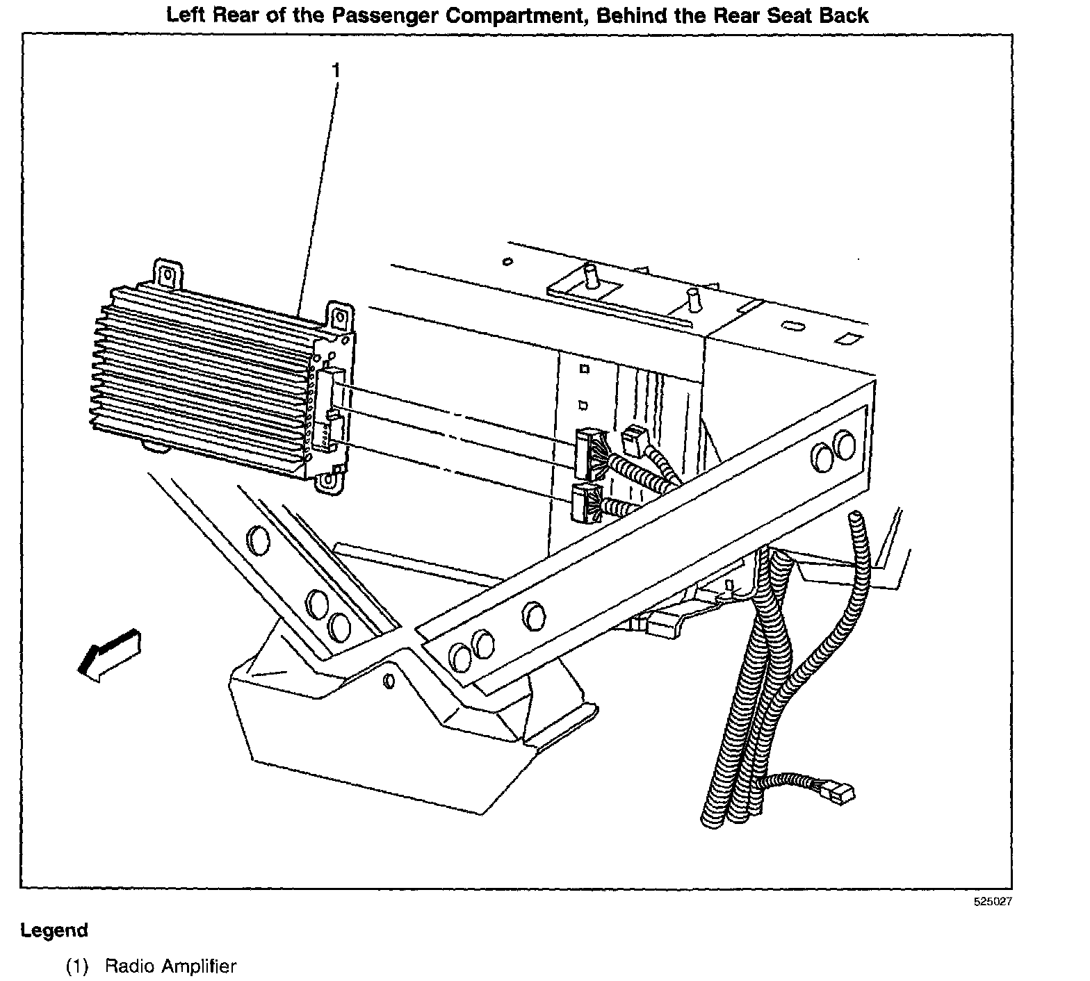 Left rear of the passenger compartment, behind the rear seat back