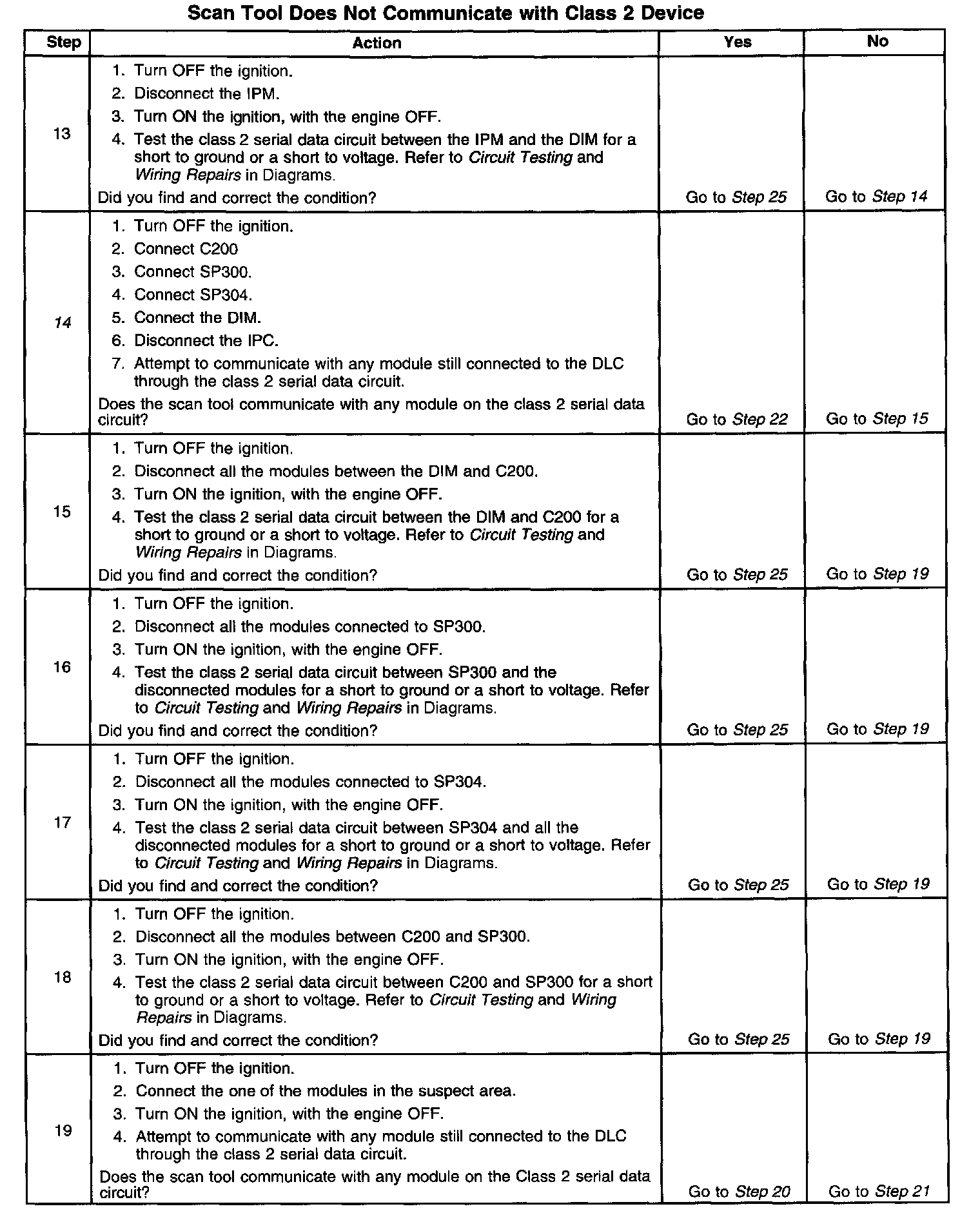 2. A partial malfunction in the class 2 serial data circuit uses a different procedure from a total malfunction of the class 2 serial data circuit.