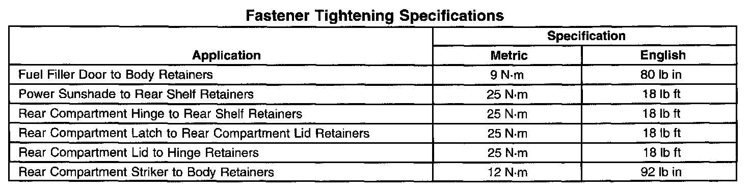 Fastener Tightening Specifications: