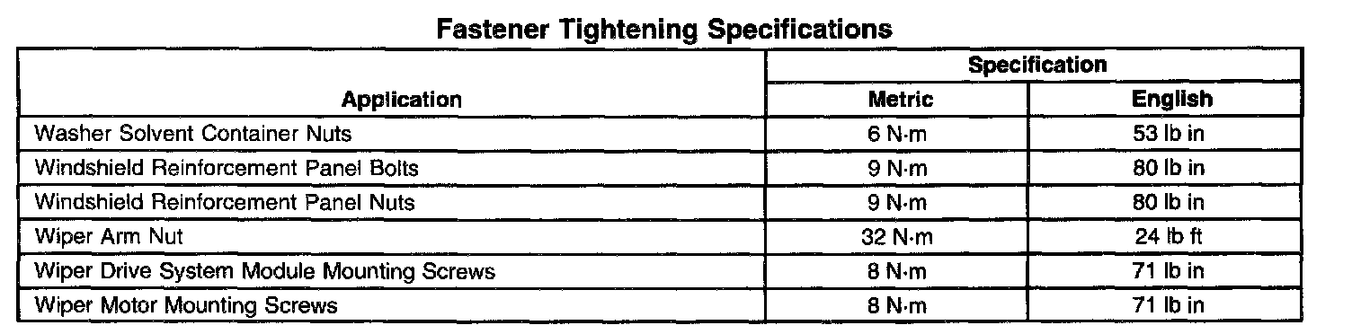 Wiper and Washer Systems: Specifications