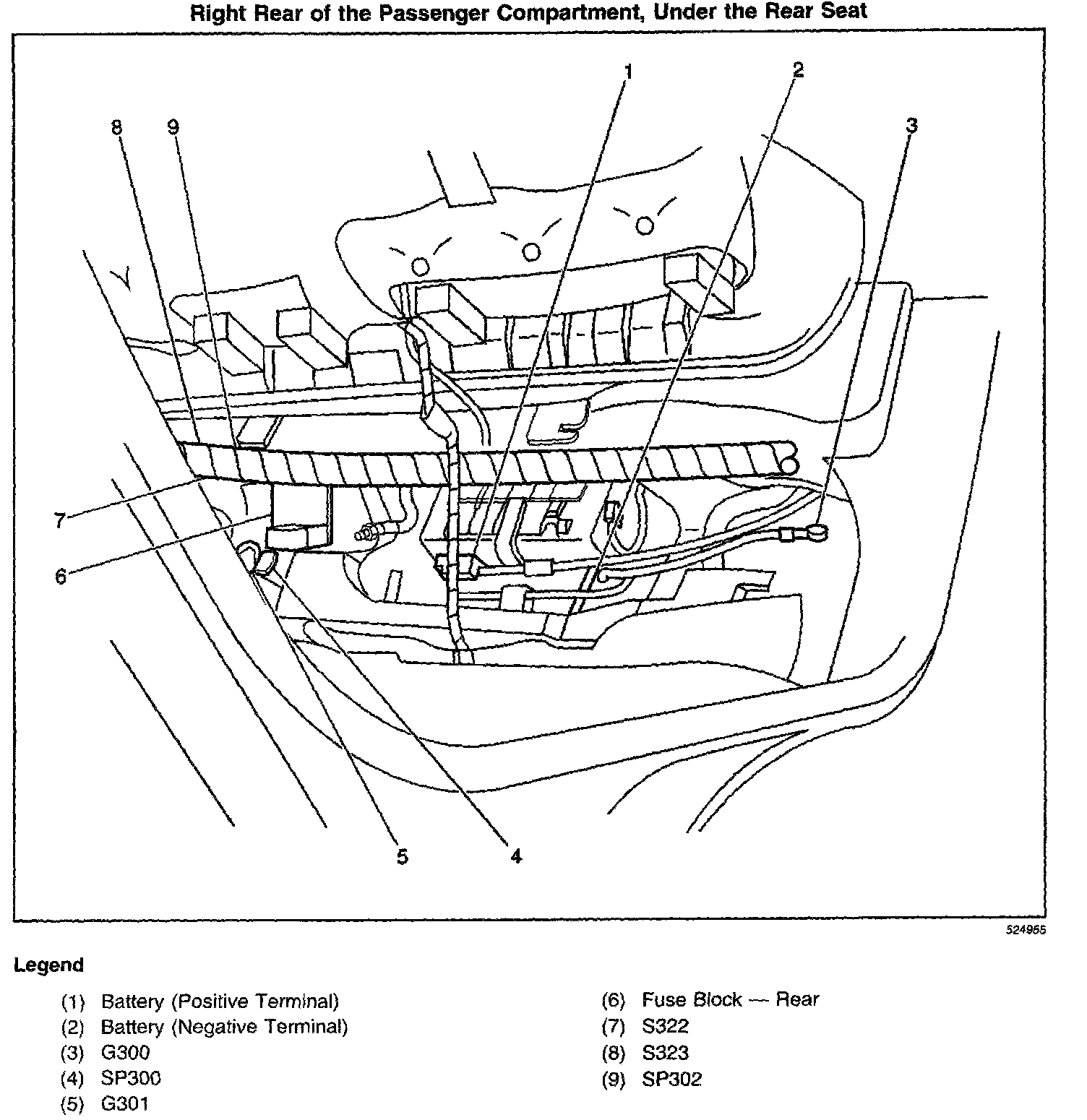 Left rear of the passenger compartment, under the rear seat