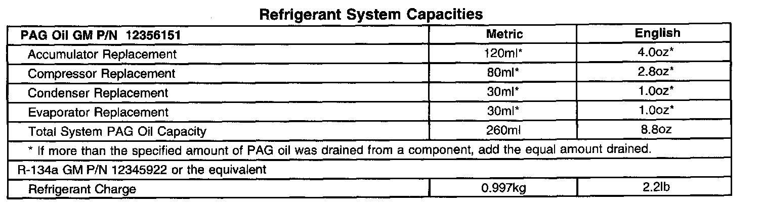 Refrigerant System Capacities: