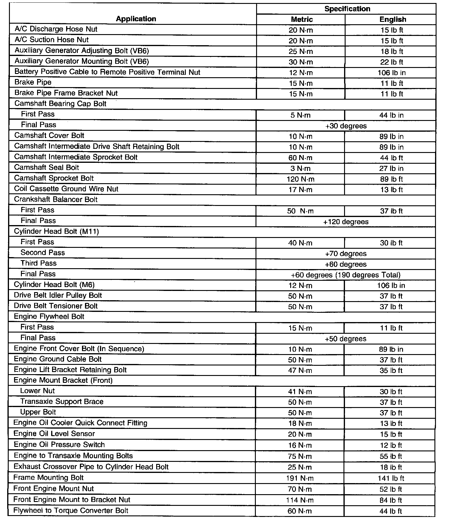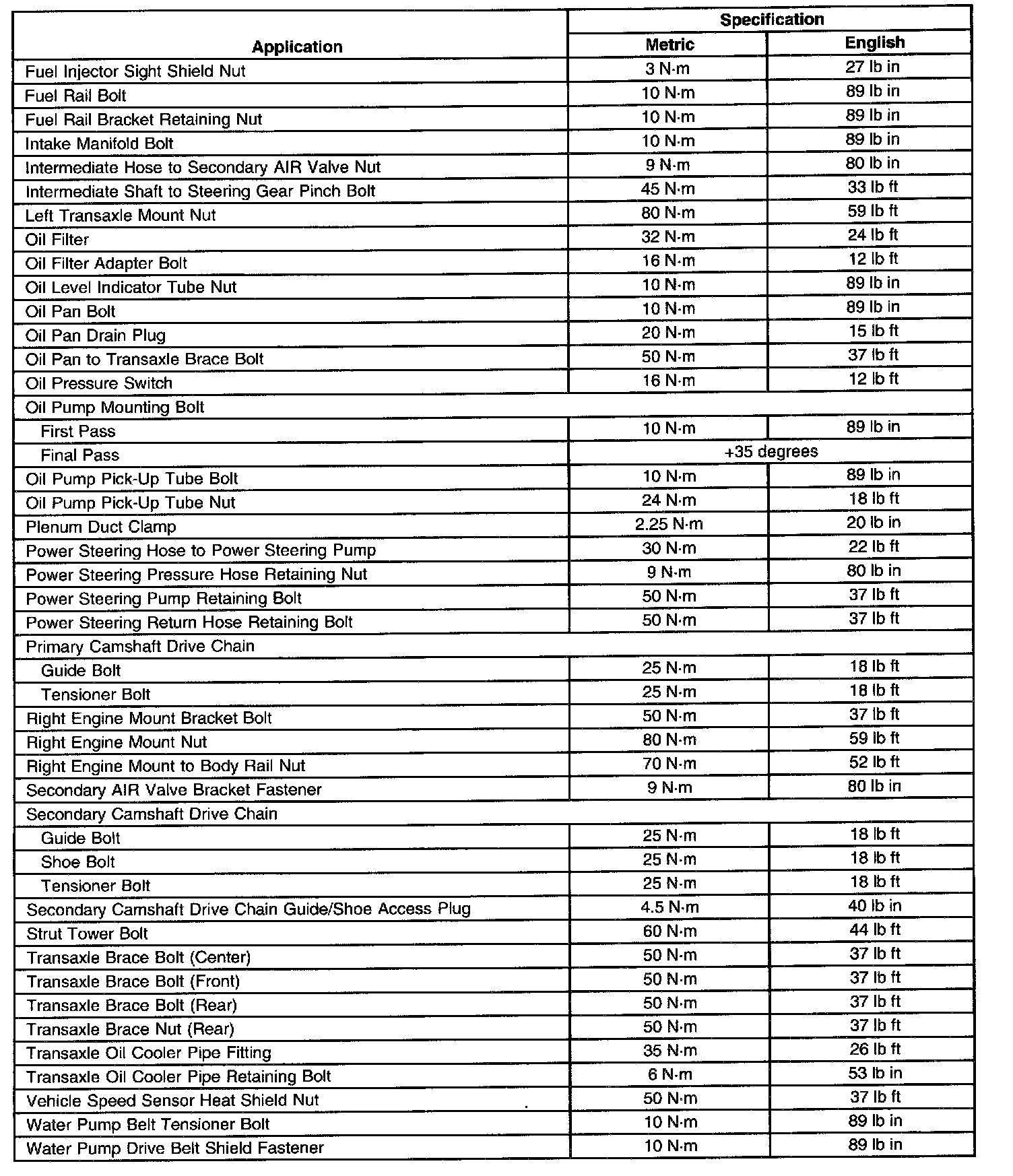 Fastener Tightening Specifications
