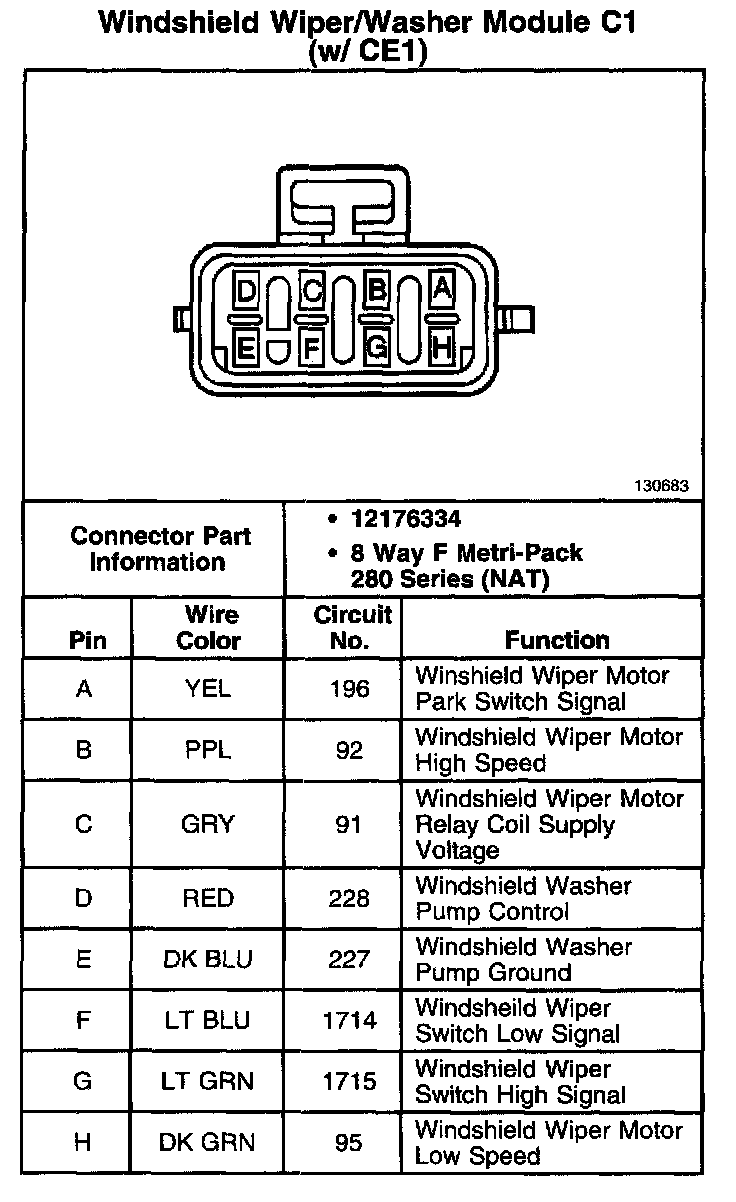 Windshield Wiper/Washer Module C1 (W/ CE1):