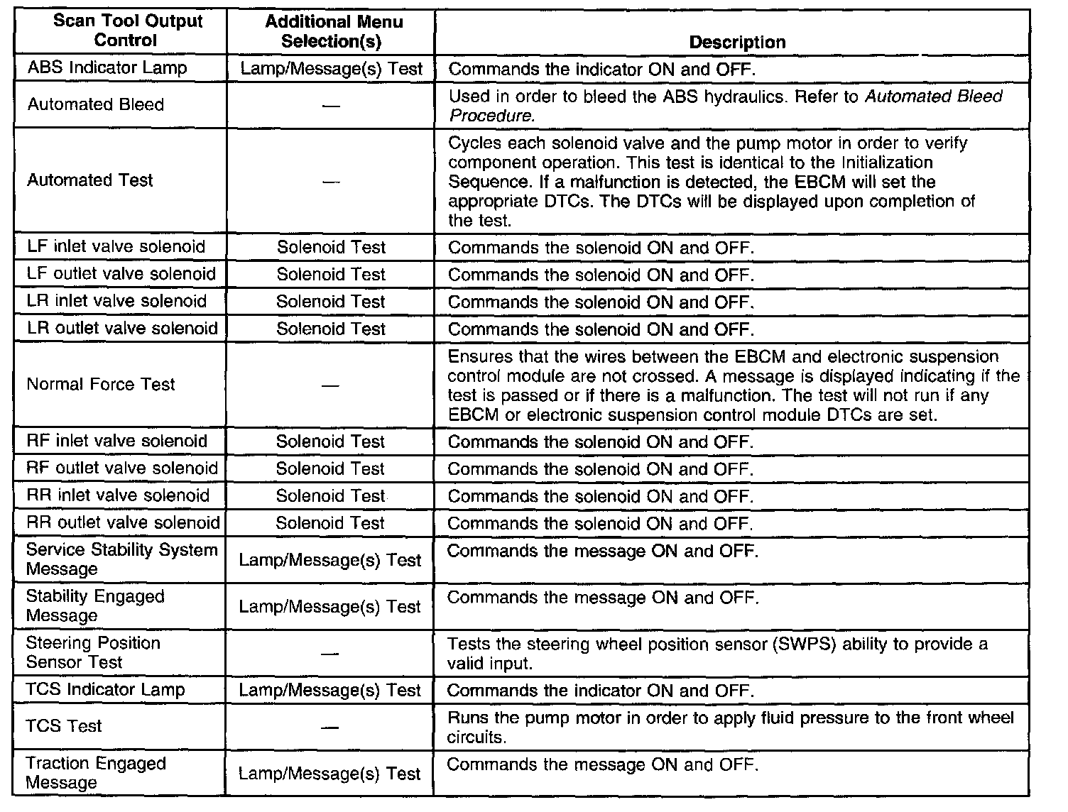 Scan Tool Output Controls