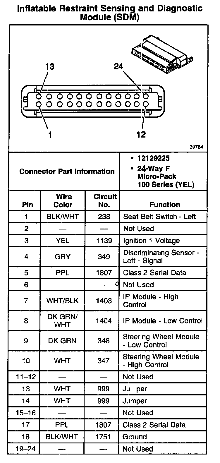 Inflatable Restraint Sensing And Diagnostic Module (SDM):