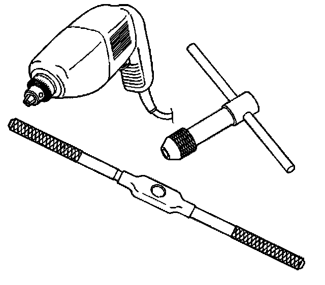 The tool kit J 42385-200 is designed for use with either a suitable tap wrench or drill motor. Limited access and larger hole repair may process better using a tap wrench. An extension J 43965 may also be necessary to drive the thread repair tooling dependent on access to the hole being repaired.