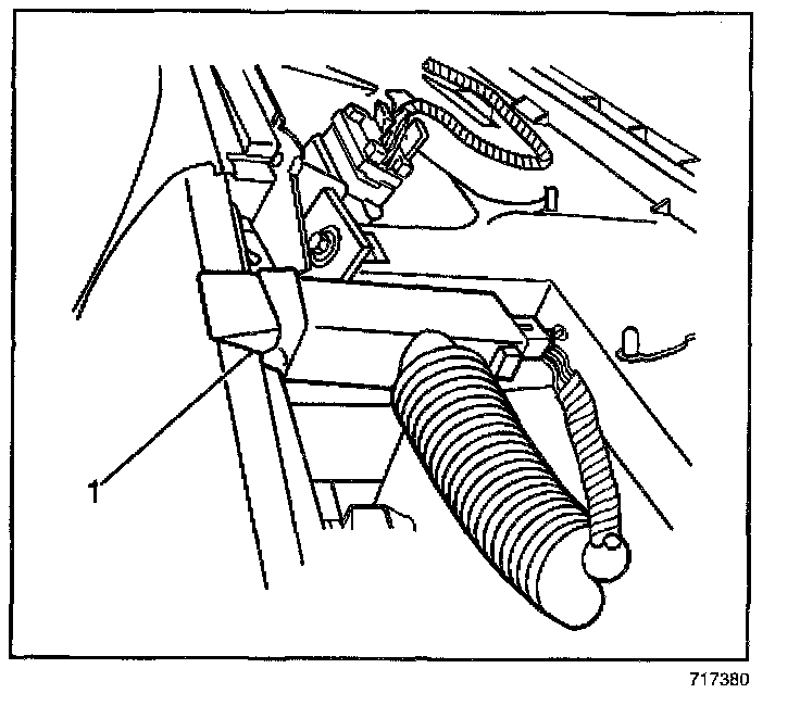 3. Install the aspirator hose to the sensor (1) and clip.