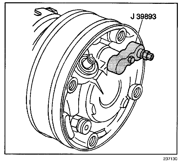 1. With the sealing washers in place, install the J 39893 on the rear head of the compressor.