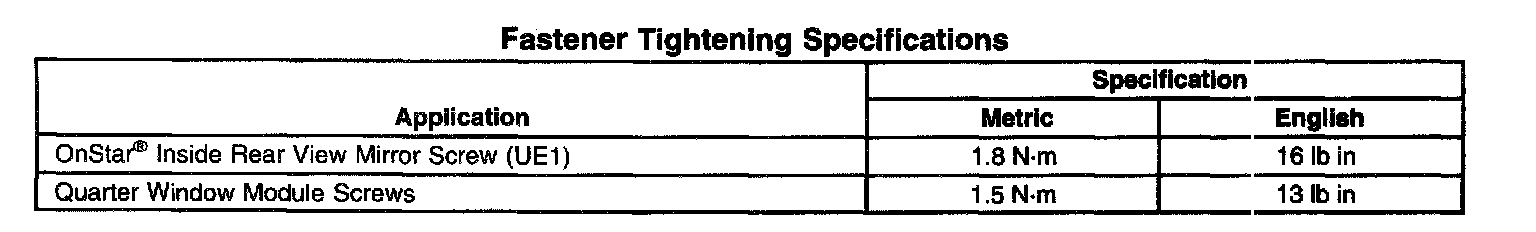 Fastener Tightening Specifications: