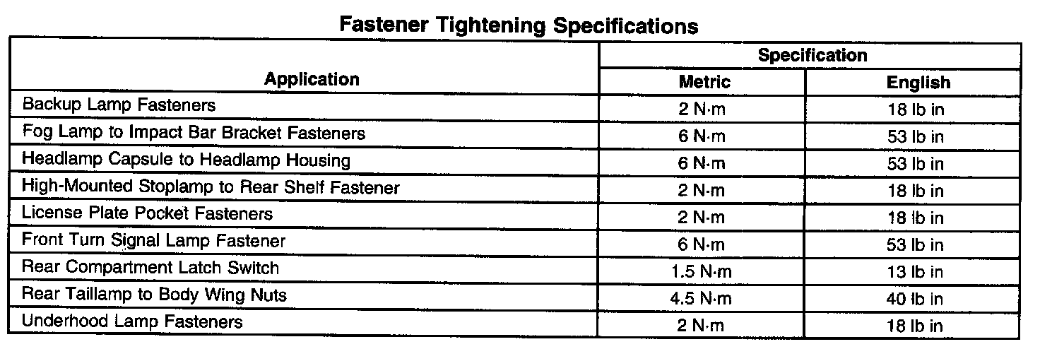 Fastener Tightening Specifications: