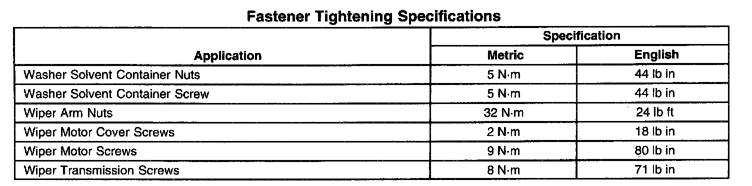 Wiper and Washer Systems: Specifications