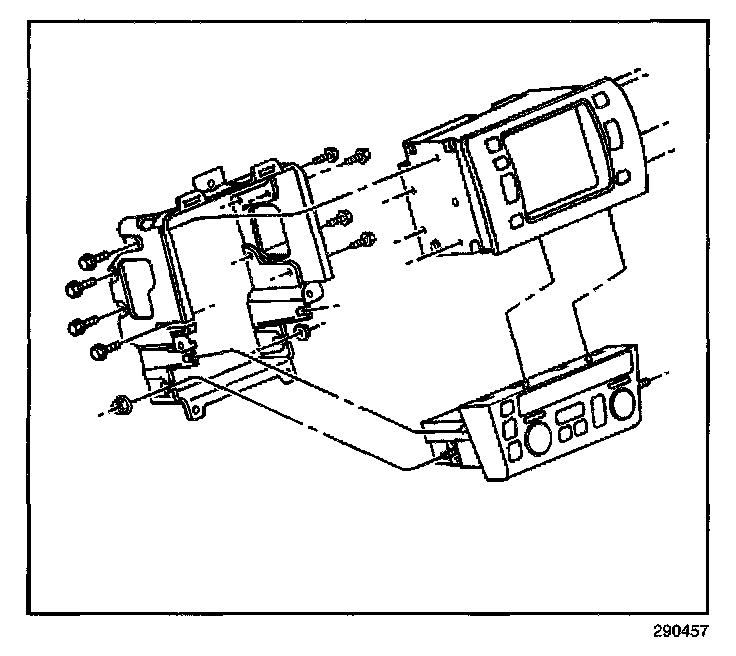 1. Mount the navigation display to the navigation / HVAC control mounting bracket.