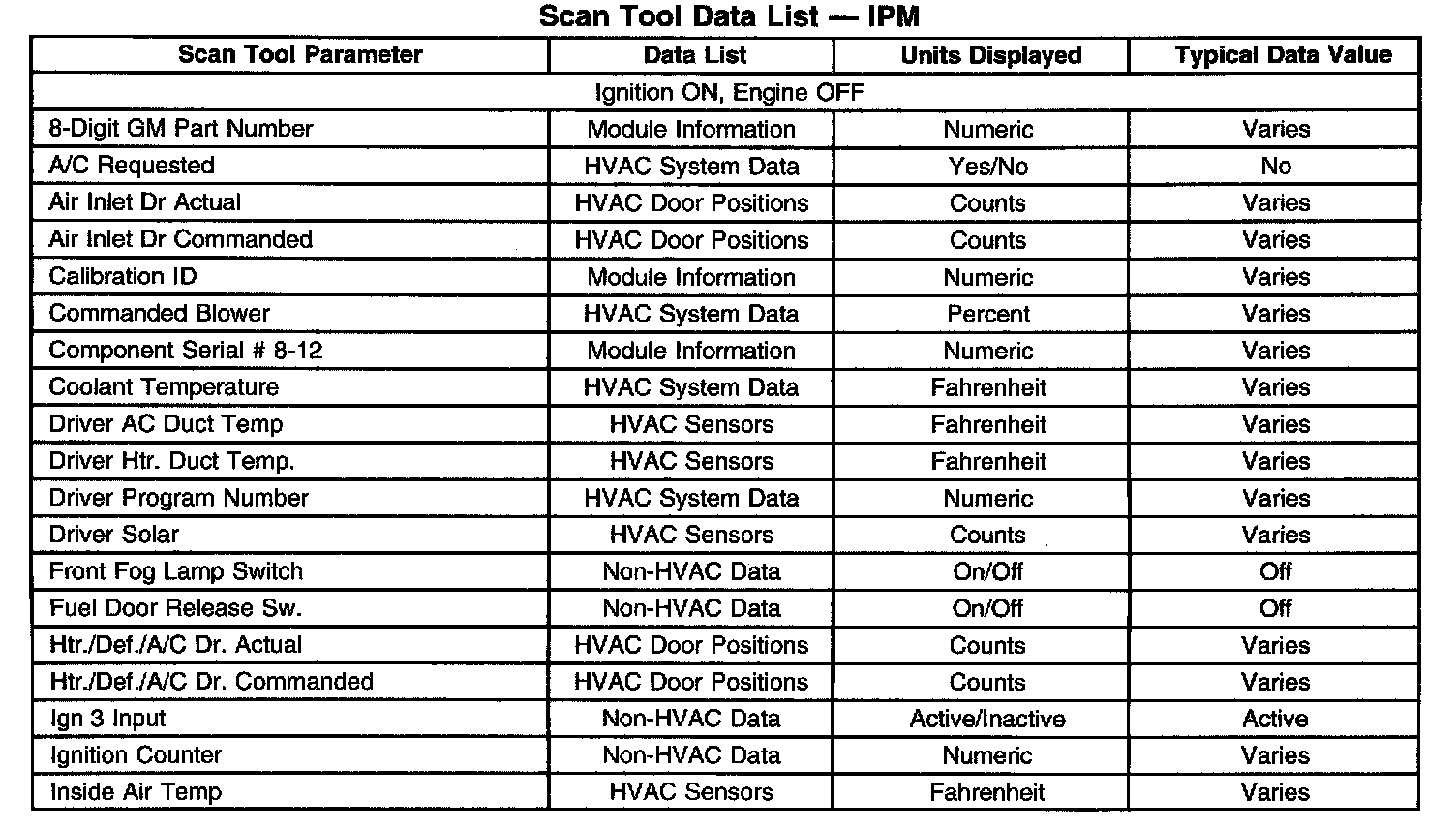 Scan Tool Data List - IPM (Part 2 Of 2):