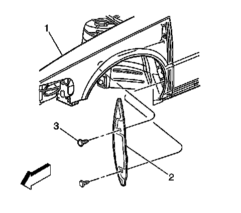 2. Remove the push in retainers (3) from the front fender sound insulator (2) to the vehicle.