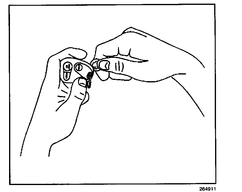 1. Insert a small coin between the 2 halves of the transmitter case at the slot provided near the key ring hole.