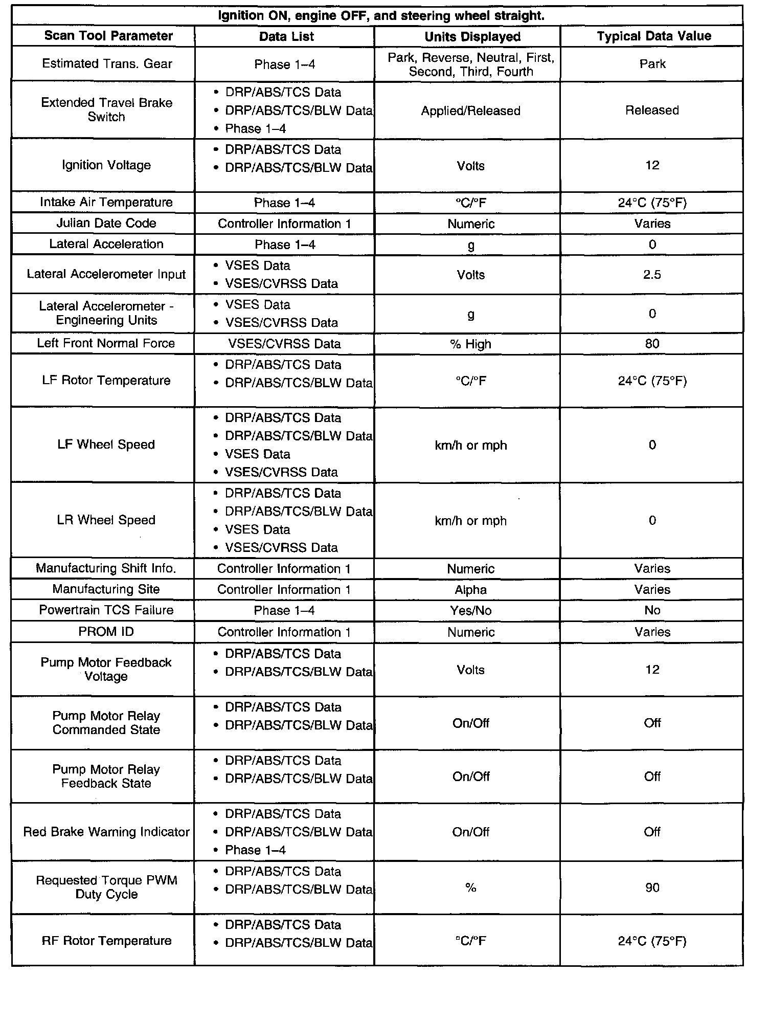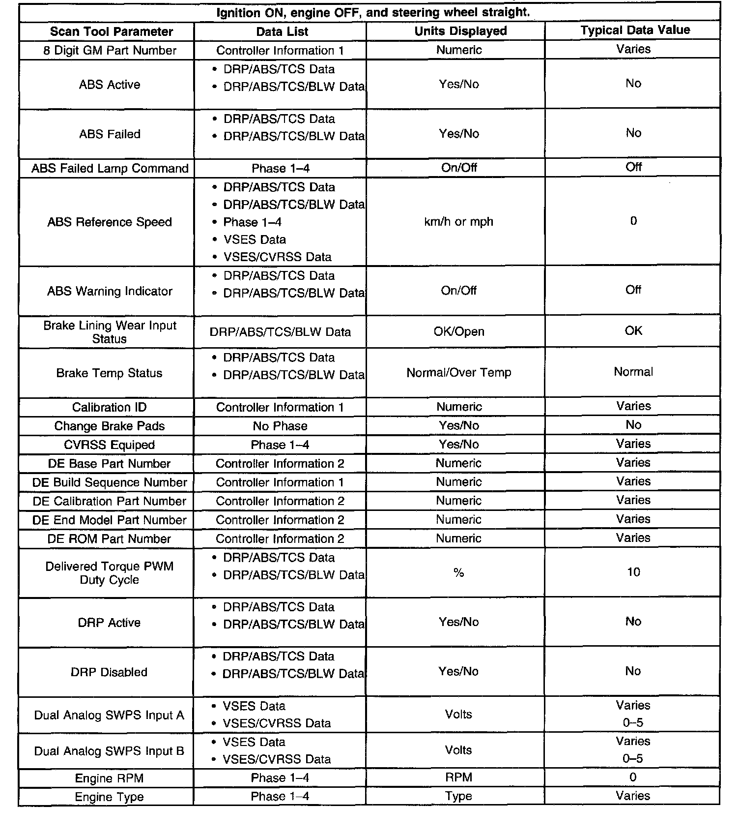 Scan Tool Data List