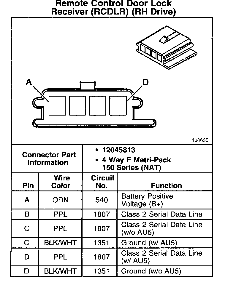 Remote Control Door Lock Receiver (RCDLR) (RH Drive)