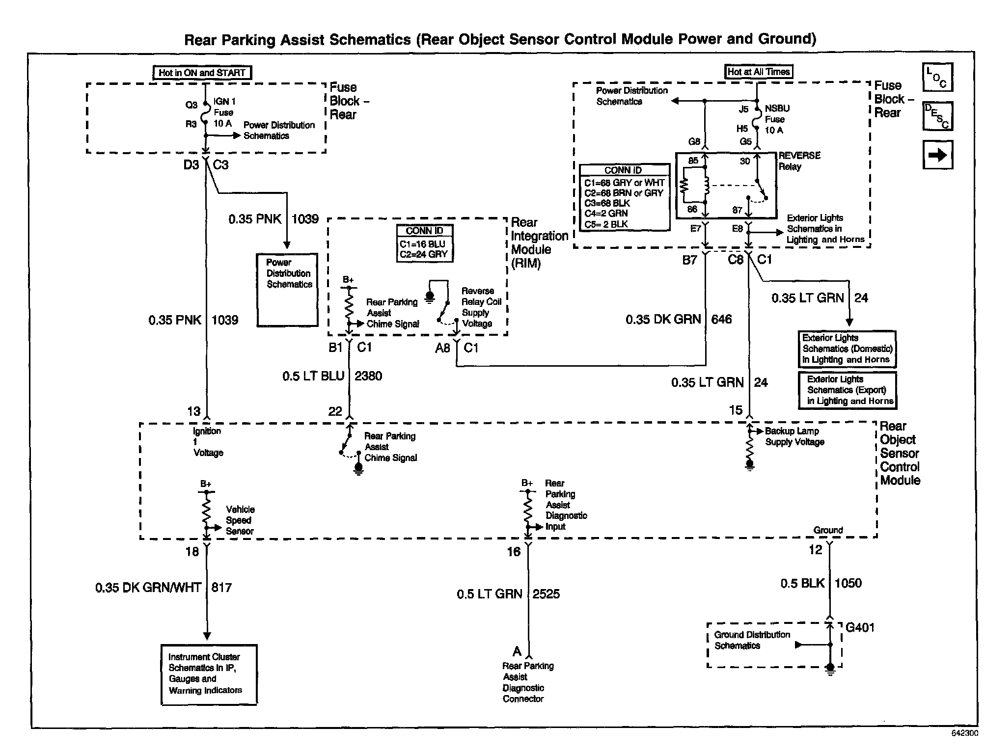 Rear Parking Assist Schematics: Rear Object Sensor Control Module Power and Ground: