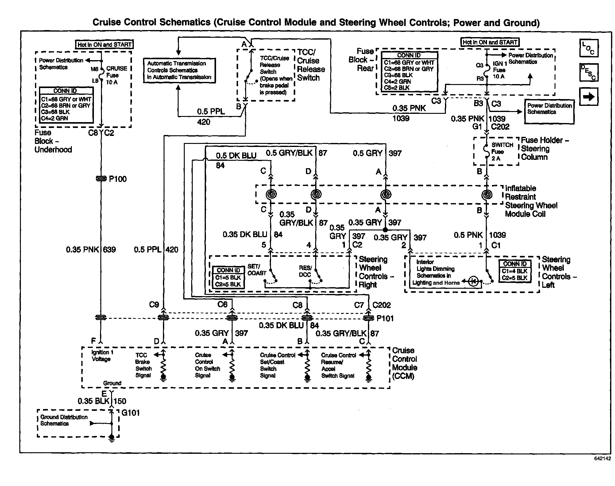 Cruise Control Schematics: Cruise Control Module and Steering Wheel Controls; Power and Ground:
