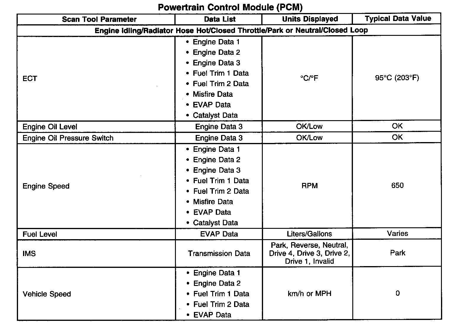 Scan Tool Data List - Powertrain Control Module (PCM)