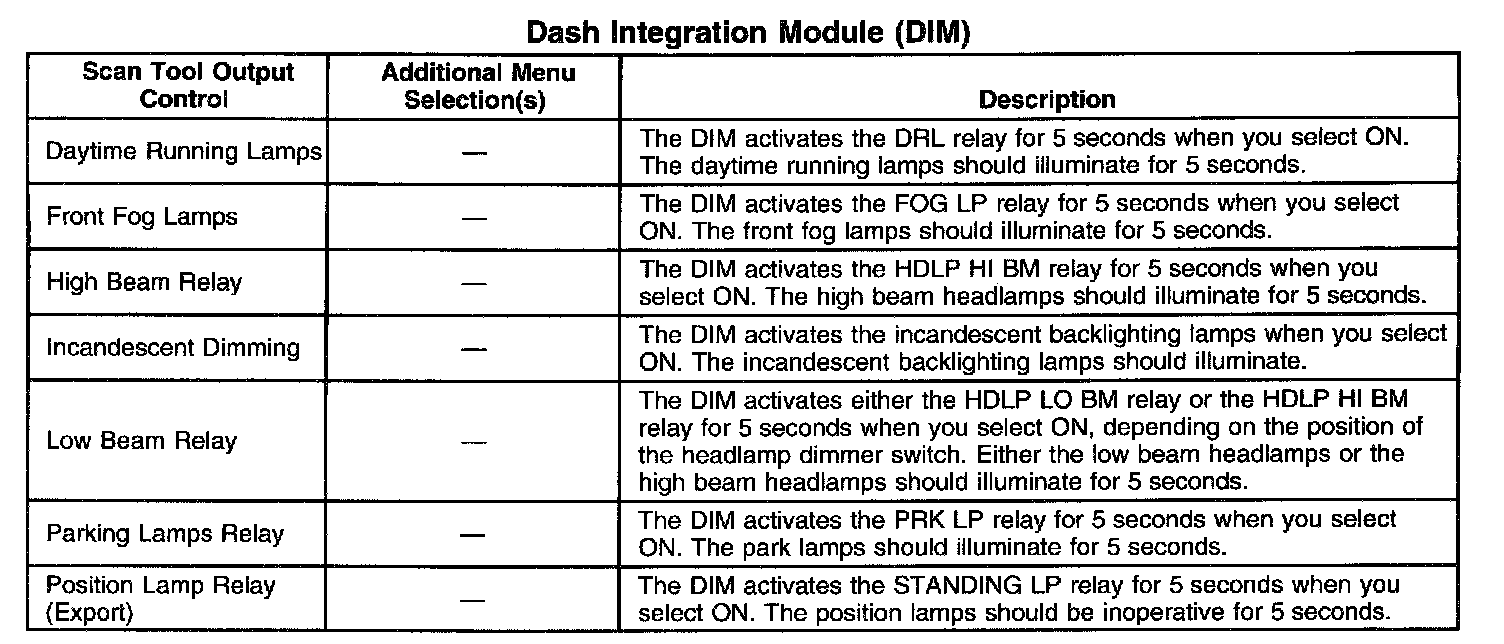 Scan Tool Output Controls - Dash Integration Module (DIM)