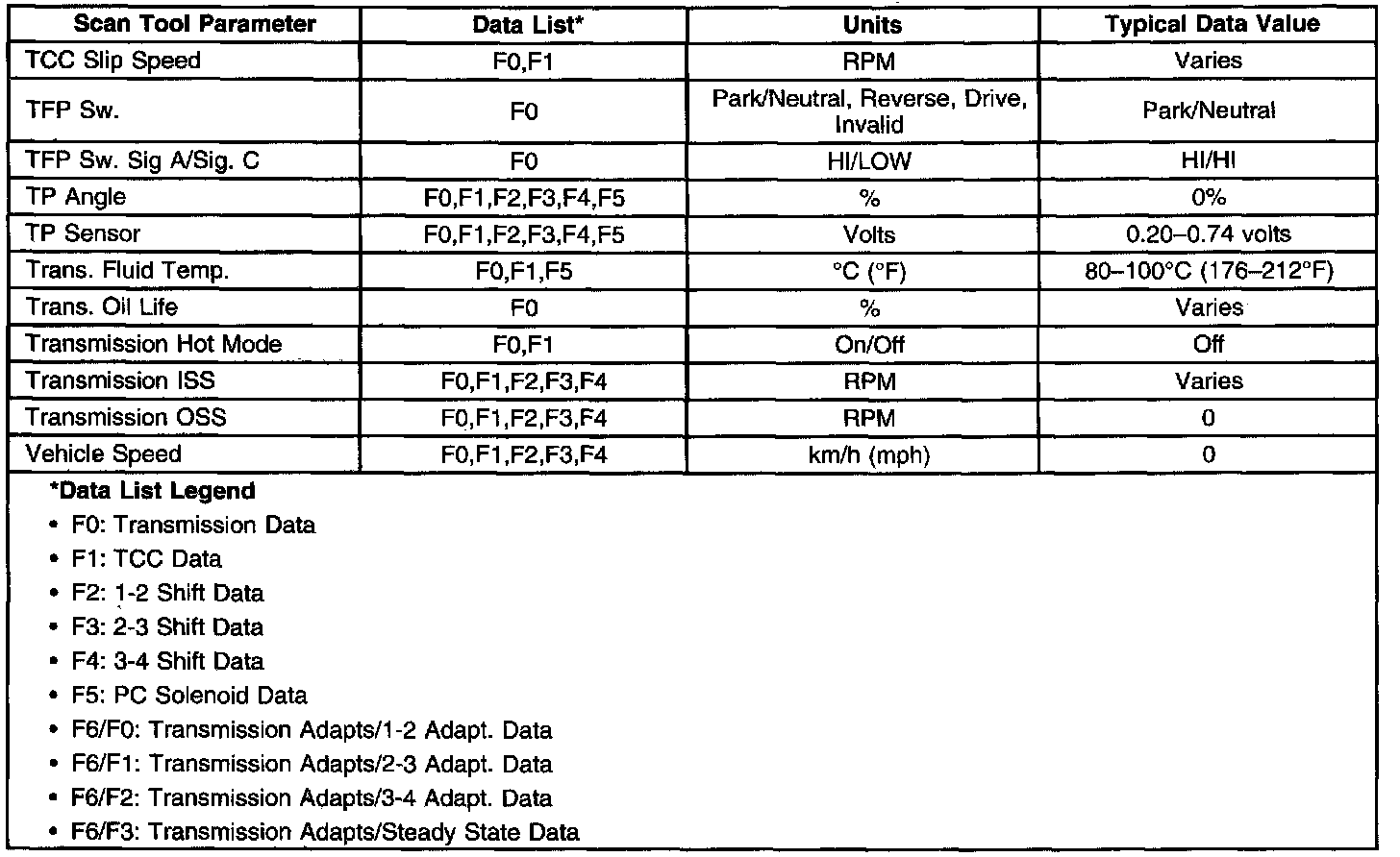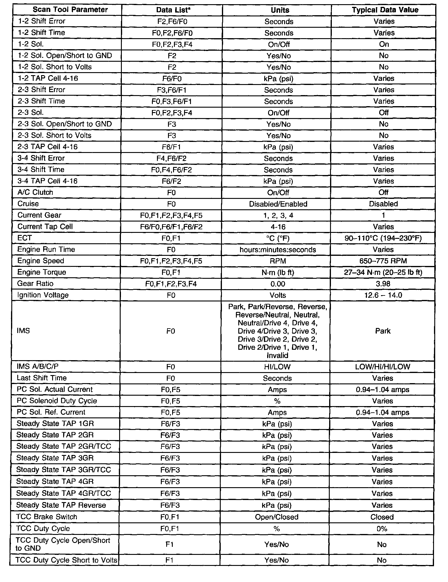 Only the parameters listed below are used in this manual for diagnosing. If a scan tool displays other parameters, the values are not recommended by General Motors for use in diagnosis.