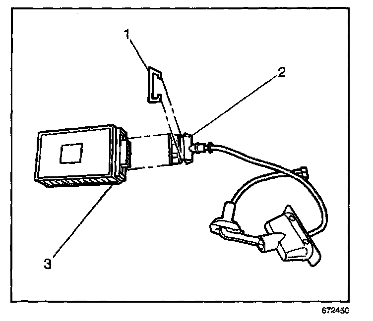 8. Remove the electrical connector and cable assembly (2) from the HID ballast (3).