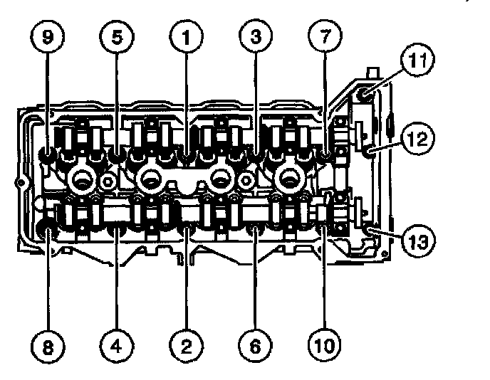 Tighten the right cylinder head M11 cylinder head bolts to 40 Nm (30 ft. lbs.) in the sequence shown.