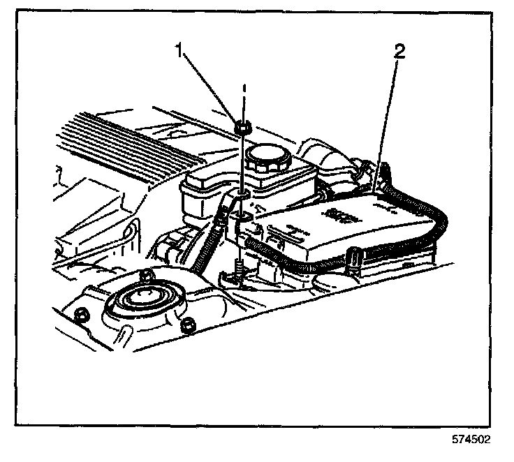 4. Remove the nut (1) securing the battery positive cable to the remote positive terminal.