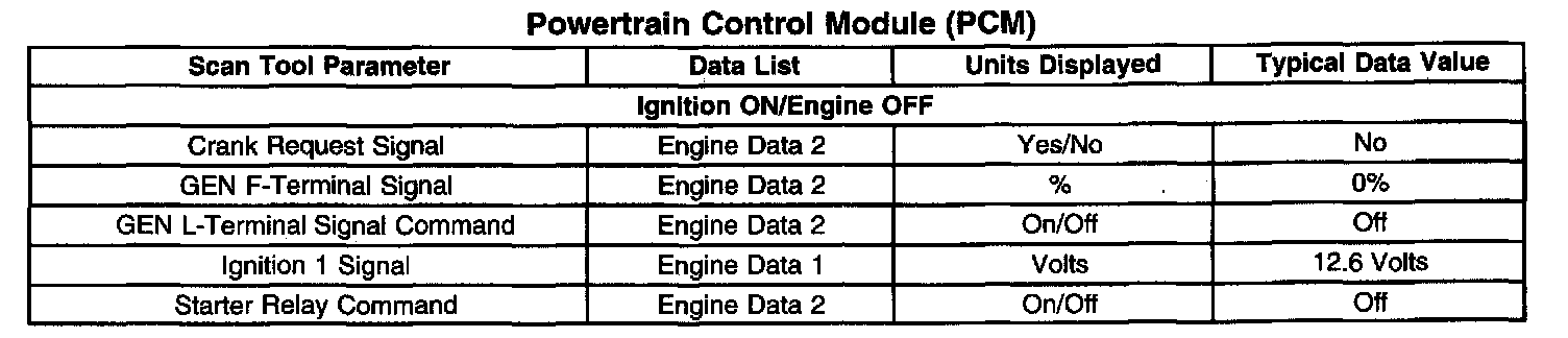 Scan Tool Data List - Powertrain Control Module (PCM)
