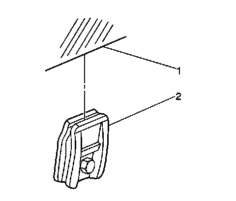5. Carefully raise the window regulator clamps (2) to the full up position, engaging the window (1).