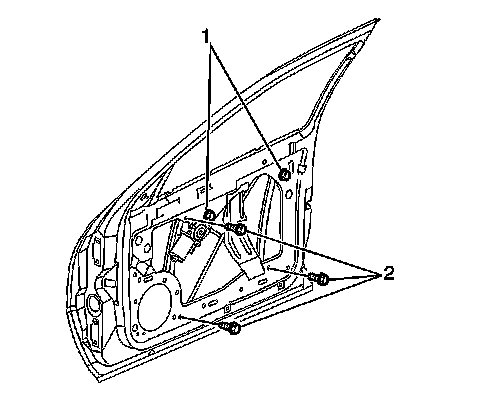 3. Install the three remaining window regulator fasteners (2) in order to secure the regulator.