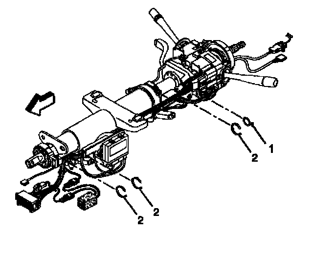 3. Remove the steering column wiring harness tie straps (1 and 2).