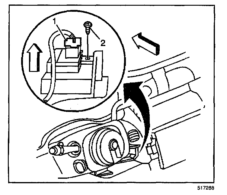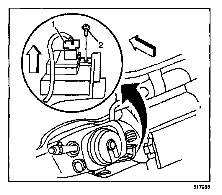 2. Install the inside air temperature sensor assembly (1) screw (2).