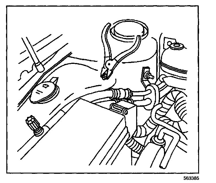 8. The final connection is made to the washer reservoir retaining stud near the strut tower, or a heavy unpainted metal engine part of the vehicle with the discharged battery.