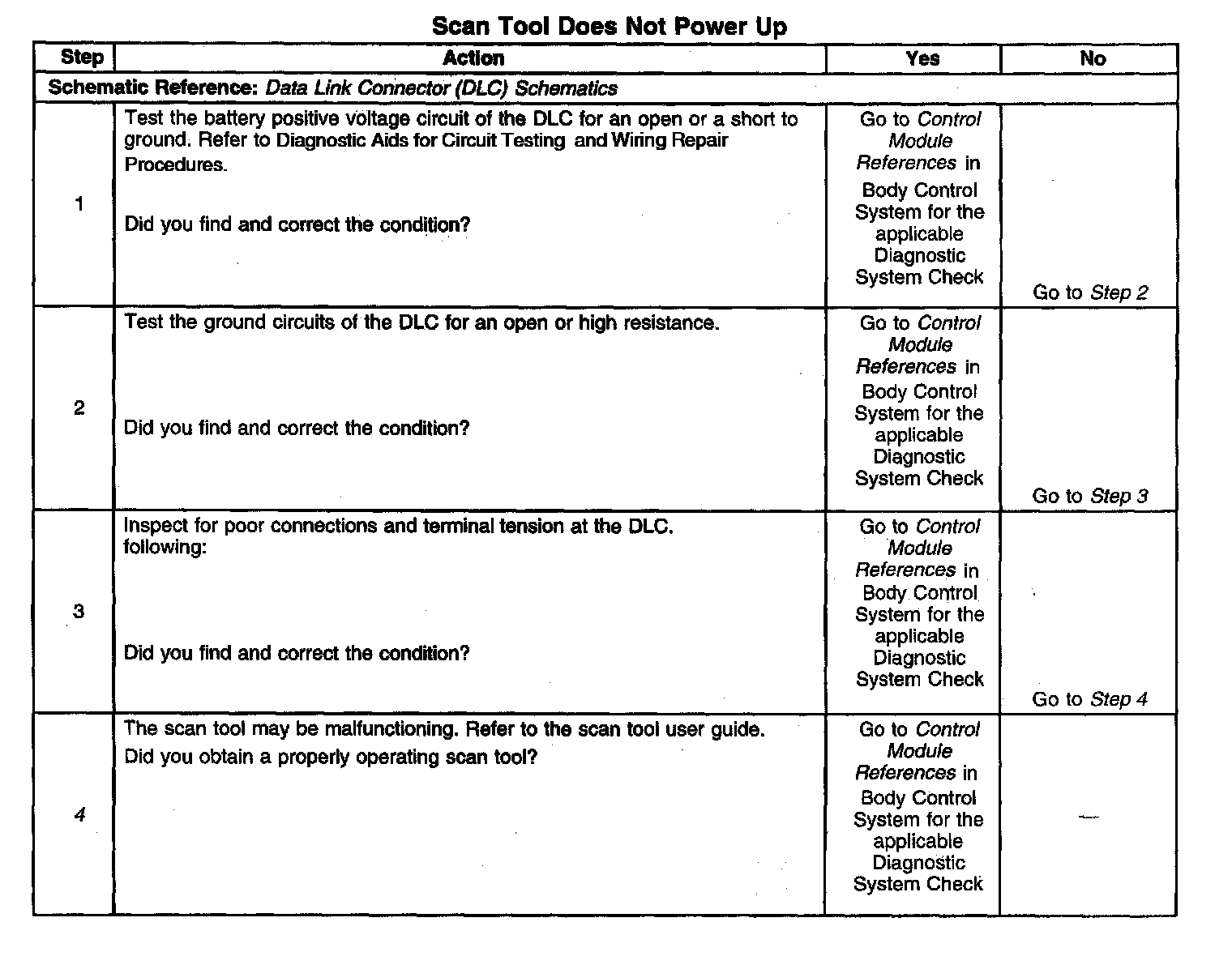 4. If the battery positive voltage and ground circuits of the DLC are functioning properly. The malfunction must be due to the scan tool.