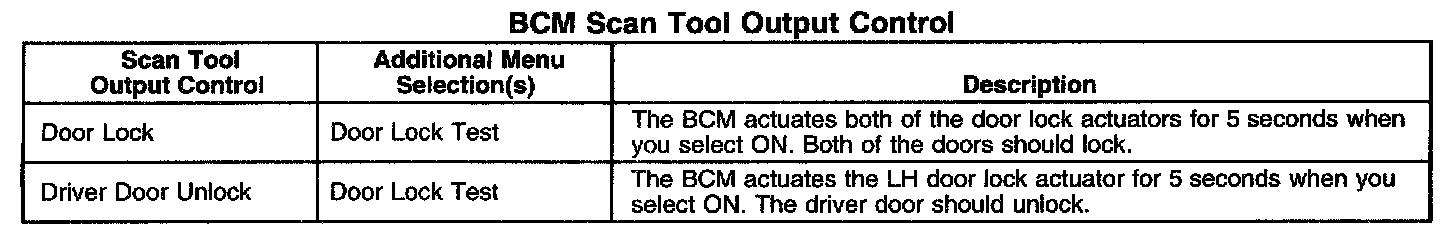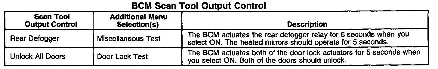 Scan Tool Output Controls - Body Control Module (BCM)