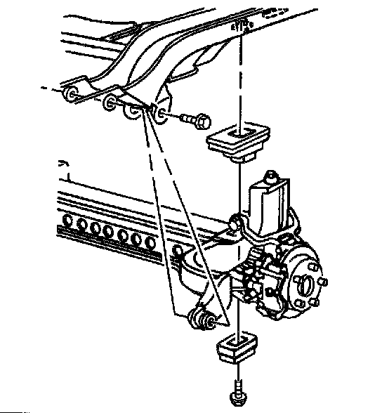 The suspension support is a separate sub-frame which supports all of the other rear suspension components. The suspension support is attached to the body at four points. The suspension support can be removed from the vehicle without removing or disconnecting the following parts: