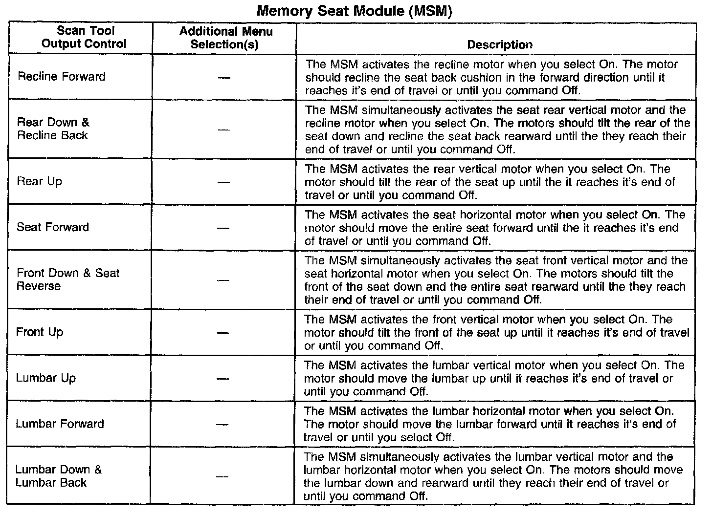 Scan Tool Output Controls - Memory Seat Module (MSM)