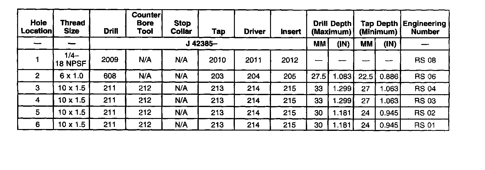 Thread Repair Specifications