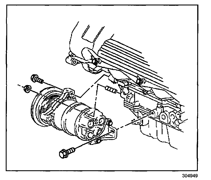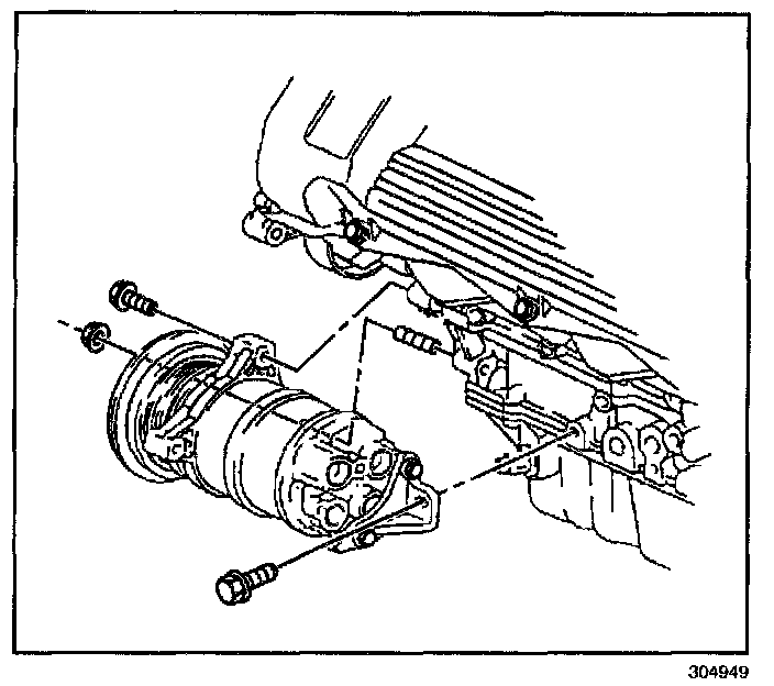 7. Remove the bolt that secures the compressor hose assembly (1).