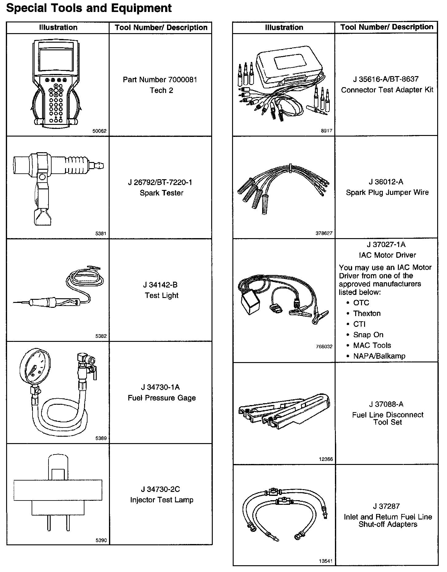 Special Tools And Equipment Part 1: