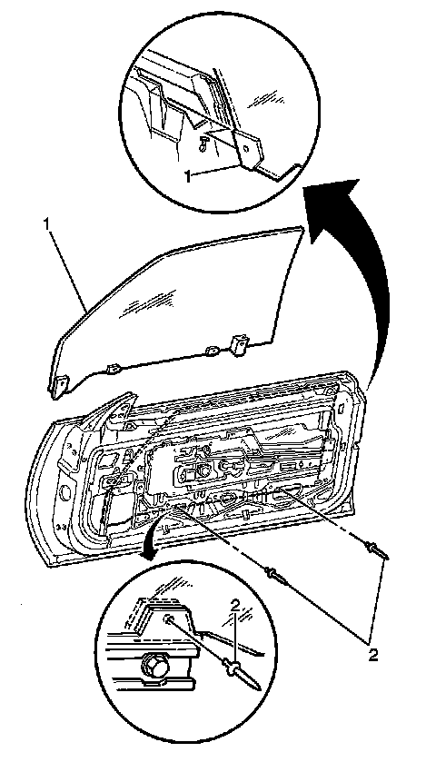 1. Remove the door trim panel. Refer to Trim Panel Replacement - Door (Service and Repair) .