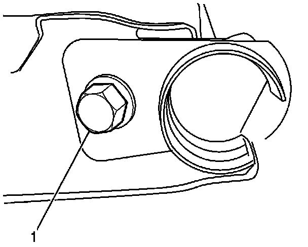 1. Loosen the bolt (1) that attaches the opposite end of the support cable to the latch assembly (2).