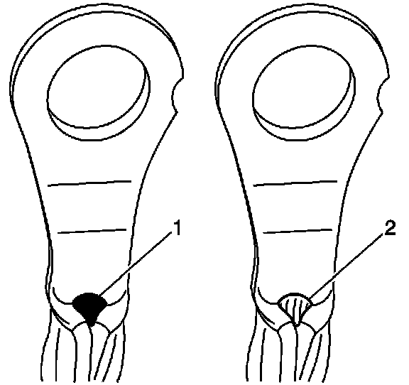 In the above illustration, the clear sealant (1) is shown as black in color. This was done for illustration purposes only. If sealant is present on the support cables it will be clear or hazy (cloudy) in appearance.